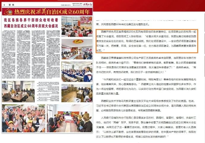 ?。冈?2日,西藏開投色尼區(qū)曲果嘎姆200兆瓦風(fēng)電項(xiàng)目組織各參建單位干部職工、在項(xiàng)目就業(yè)的農(nóng)牧民一起觀看西藏自治區(qū)成立60周年慶祝大會盛況的消息,被中國西藏網(wǎng)、西藏日報、中國西藏新聞網(wǎng)、西藏法制報等各級媒體平臺宣傳報道。