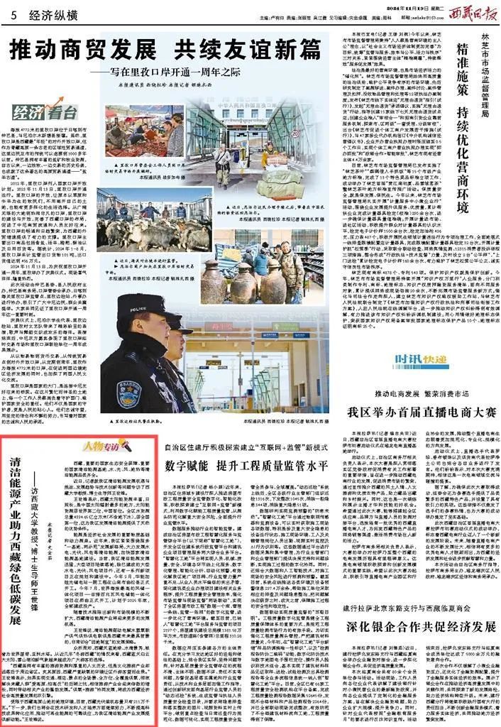 近日,記者就我區(qū)清潔能源發(fā)展機遇與挑戰(zhàn)、發(fā)展趨勢與技術(shù)創(chuàng)新等問題專訪了西藏大學(xué)教授、博士生導(dǎo)師王世鋒。