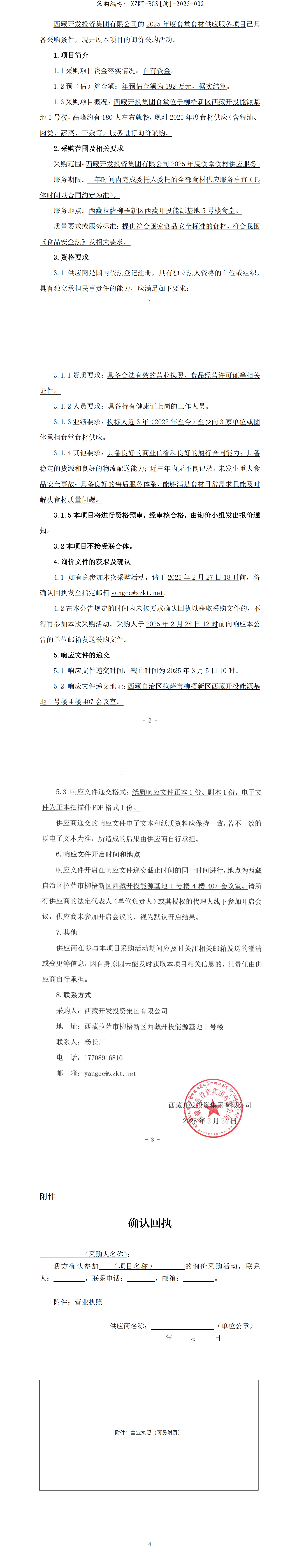 西藏開發(fā)投資集團有限公司2025年度食堂食材供應(yīng)服務(wù)詢價采購公告