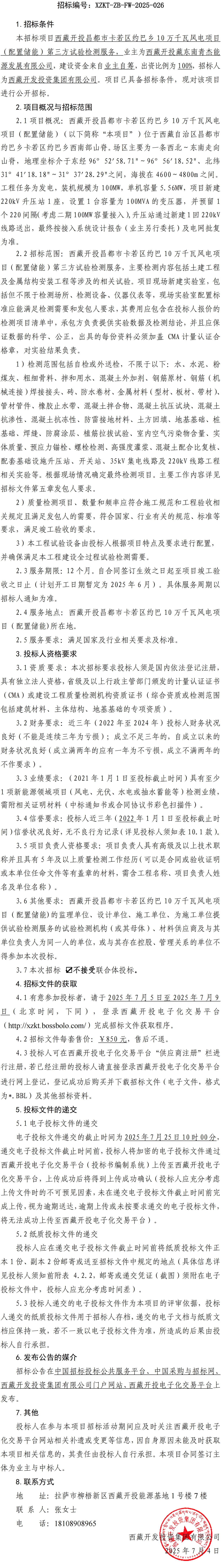 西藏開投昌都市卡若區(qū)約巴鄉(xiāng) 10 萬千瓦風電項目(配置儲能) 第三方試驗檢測服務招標公告